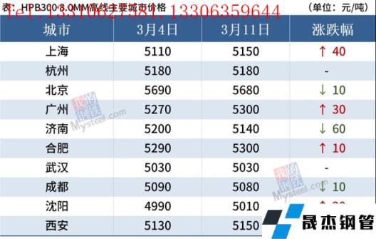 截至3月11日,全國主要城市20mm三級抗震螺紋鋼均價4952元/噸,周環比上漲6元/噸;8.0mmHPB300高線均價5164元/噸,周環比上漲3元/噸。