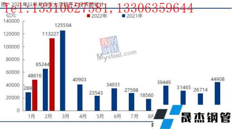 2月春節(jié)以來,全國迎來開工潮,甘肅、吉林、山東、陜西、湖北、浙江、湖南、江西、云南、福建等10省相繼舉行省級重大項(xiàng)目集中開工活動。據(jù)不完全統(tǒng)計(jì),2022年2月,全國各地共開工20459個項(xiàng)目,總投資額11.3萬億,2月開工項(xiàng)目數(shù)量環(huán)比增208.4%,總投資額環(huán)比增132.9%,同比增73.5%。