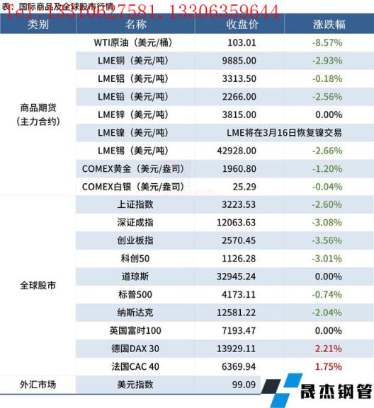 ◎ 倫敦金屬交易所(LME)稱鎳合約將在當?shù)貢r間3月16日恢復(fù)交易,并對所有金屬的每日價格波動施加15%幅度的限制。