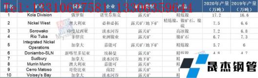 以上為2020年全球十大鎳礦山排名。詳情請點(diǎn)擊》》