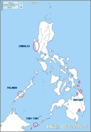 菲律賓的紅土鎳礦主要分布在北部的三巴里斯Zambales(三描禮士)和伊莎貝拉Isabella礦區(qū); 中部的巴拉望Palawan和蘇里高Surigao(包含Dinagat/迪納加特和Tubay/圖拜);南部的塔威Tawi-Tawi、達(dá)沃和東達(dá)沃Davao Oriental地區(qū)。