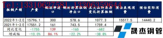 免責聲明:本網站(山東聊城晟杰無縫鋼管廠www.qiazhuo.cn)刊載的“解讀:2022年1-2月粗鋼產銷同比雖有下滑,但消費表現明顯好于市場預期”等均源于網絡,版權歸原作者所有,且僅代表原作者觀點,本文所載信息僅供參考。轉載僅為學習與交流之目的,如無意中侵犯您的合法權益,請及時聯系刪除。本網站刊登此篇文章并不意味著本站贊同其觀點或證實其內容的真實性,我們不對其科學性、嚴肅性等作任何形式的保證。如果侵犯了您的版權,請盡快聯系我們予以撤銷,謝謝合作!