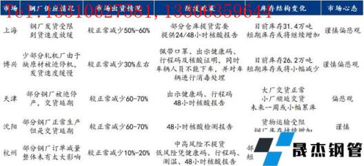 2.供應方面:河北、山東等地部分短流程生產企業處于停產狀態;東北部分無縫厚壁鋼管廠家正常生產,但是廠區處于封閉狀態,貨物無法運輸至外圍市場;南方區域大部分生產企業則正常生產、正常發貨,僅需憑48小時核酸即可進入提貨。