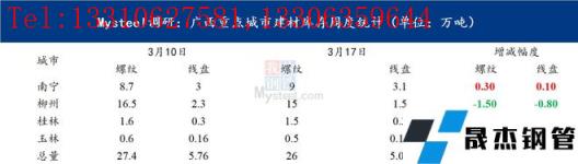 圖表一:廣西重點城市建材庫存周度統計