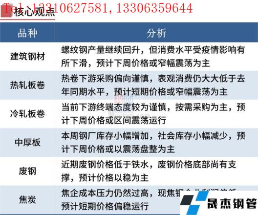 本周國內(nèi)多地?zé)o縫厚壁鋼管廠家運輸受阻,鋼市成交量明顯下滑,短期廠內(nèi)庫存或進(jìn)一步累積,抑制鋼價反彈高度。不過,電爐廠已陷入虧損,加之預(yù)期穩(wěn)增長政策將出,鋼價底部支撐力度也強。當(dāng)前市場復(fù)雜多變,國內(nèi)疫情形勢,穩(wěn)增長政策落實情況以及國際局勢變化仍是主要關(guān)注點。