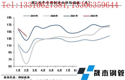 鋼鐵是終端制造業(yè)的重要生產原材料,以鋼鐵消費趨勢為觀測視角可以較為準確的判斷下游制造業(yè)發(fā)展狀況。2月鋼鐵業(yè)供給指數(shù)為146.92,同比下降5.26,環(huán)比下降2.86%。北方地區(qū)在采暖季和冬奧會環(huán)保影響下,厚壁無縫鋼管產量管控依然嚴格。據(jù)統(tǒng)計,2月全國粗鋼產量6738.5萬噸,日均產量240.66萬噸,環(huán)比減少9.79萬噸,降幅3.91%,同比下降13.86%。消費方面,五大品種厚壁無縫鋼管消費環(huán)比下降19.63%,同比下降4%。具體來看,房地產資金緊張雖有緩解,但受季節(jié)影響,用鋼量繼續(xù)下降,建筑厚壁無縫鋼管表觀消費量環(huán)比下降38%。制造業(yè)方面,受春節(jié)和疫情干擾因素影響,2月份,制造業(yè)企業(yè)復工復產較晚,實際用鋼消費下降,其中熱卷消費同比下降7.4%,環(huán)比下降8.2%。