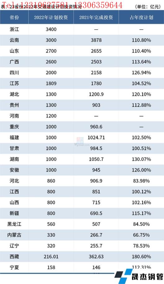 免責聲明:本網站(山東聊城晟杰無縫鋼管廠www.qiazhuo.cn)刊載的“23省份2022年交通建設計劃投資近3萬億元”等均源于網絡,版權歸原作者所有,且僅代表原作者觀點,本文所載信息僅供參考。轉載僅為學習與交流之目的,如無意中侵犯您的合法權益,請及時聯系刪除。本網站刊登此篇文章并不意味著本站贊同其觀點或證實其內容的真實性,我們不對其科學性、嚴肅性等作任何形式的保證。如果侵犯了您的版權,請盡快聯系我們予以撤銷,謝謝合作!