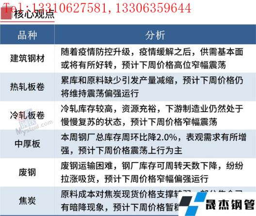 供給方面,受疫情影響,全國高爐廠復產進度放緩,部分電爐廠因虧損選擇停產檢修,本周鋼鐵產量增加有限。需求方面,多地疫情管控升級,物流運輸受阻,工程施工放緩,對厚壁無縫鋼管需求影響更大。無縫厚壁鋼管廠家?guī)齑嬉堰B續(xù)兩周環(huán)比增加,供需基本面偏弱。不過,由于成本支撐及輸入性通脹壓力加大,廠商也無降價意愿。短期內,鋼市不確定因素較多,鋼價或震蕩偏強,板材表現(xiàn)強于建材,持續(xù)關注國內疫情及國際局勢變化。