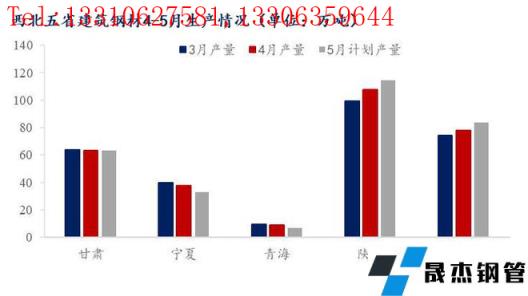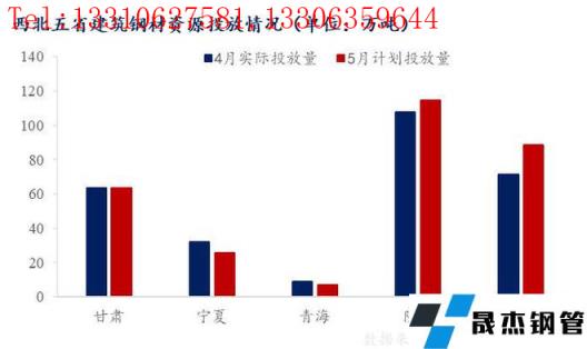 5月西北區(qū)域無縫厚壁鋼管廠家計劃總產(chǎn)量約為301.64萬噸,較4月實(shí)際產(chǎn)量增加6.3萬噸左右,其中陜西和新疆分別增加7.2萬噸和6.6萬噸,甘肅無明顯變化,青海和寧夏略有減量。
