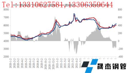 華東和華南作為鍍鋅板卷三大主流區(qū)域中的兩個(gè),其分工職責(zé)略有不同,華東地區(qū)以上海為例,其更多是作為無縫厚壁鋼管廠家投放資源的聚集地。隨著周邊江蘇、浙江等下游產(chǎn)業(yè)越來越集中,上海地區(qū)資源真正消化也是依托周邊市場(chǎng)。而華南市場(chǎng)一直以來作為消費(fèi)市場(chǎng),基本屬于是資源流入型區(qū)域,尤其是華東、華北地區(qū)資源,依托水運(yùn)將大部分資源發(fā)往華南。無論是從地理位置還是資源消費(fèi),華南地區(qū)價(jià)格本應(yīng)該處于三大主流區(qū)域中價(jià)格最高的水平,但是從圖1可以明顯看出,2021年6月中下旬到8月上旬,差不多維持了一個(gè)半月的倒掛,華南地區(qū)鍍鋅板卷價(jià)格較華東地區(qū)倒掛幅度達(dá)到200元/噸左右。筆者分析來看,2021年6月份市場(chǎng)仍處于上漲過程中,隨著價(jià)格的不斷上漲,華東與華南地區(qū)的價(jià)格逐漸拉開差距,華南地區(qū)的上漲速度明顯不及華東。在下跌過程中,華南地區(qū)價(jià)格表現(xiàn)更為堅(jiān)挺,逐漸與華東地區(qū)拉開差距,到11月份兩者間差距擴(kuò)大至全年最高450元/噸,而后華南價(jià)格高于華東地區(qū)逐漸恢復(fù)正常水平。