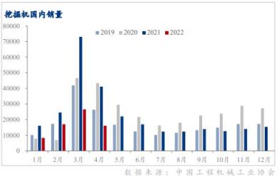 受疫情持續影響、房地產和基建工程開工率低迷等因素影響, 4月份工程機械的核心代表挖掘機銷售量同環比雙降。