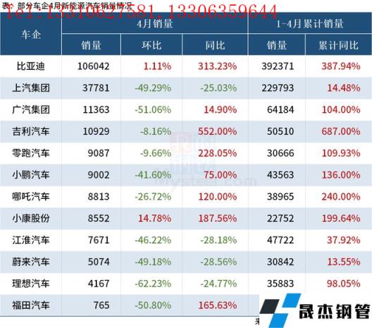 免責聲明:本網站(山東聊城晟杰無縫鋼管廠www.qiazhuo.cn)刊載的“4月10家新能源車企銷量環比大降”等均源于網絡,版權歸原作者所有,且僅代表原作者觀點,本文所載信息僅供參考。轉載僅為學習與交流之目的,如無意中侵犯您的合法權益,請及時聯系刪除。本網站刊登此篇文章并不意味著本站贊同其觀點或證實其內容的真實性,我們不對其科學性、嚴肅性等作任何形式的保證。如果侵犯了您的版權,請盡快聯系我們予以撤銷,謝謝合作!