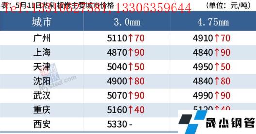 熱軋板卷:5月11日,全國24個主要城市4.75mm熱軋板卷均價5048元/噸,較上個交易日上漲36元/噸。現貨市場早盤報價回漲,市場成交尚可,盤中期卷持續上漲,市場價格跟漲,漲后成交表現一般,整體觀望情緒濃厚。總體來看,前期盤面大幅下跌,導致了市場需求明顯減少,無縫厚壁鋼管廠家利潤接近虧損線,在盤面反彈回漲之后,市場情緒有所提振,前期部分延遲需求逐步釋放,商家壓力有所減輕。預計12日全國熱軋板卷或將偏強運行為主。