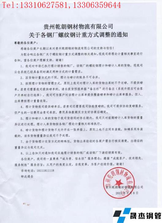 免責聲明:本網站(山東聊城晟杰無縫鋼管廠www.qiazhuo.cn)刊載的“貴州乾朗鋼材_無縫鋼管物流有限公司關于各無縫鋼管廠家螺紋鋼計重方式調整的通知”等均源于網絡,版權歸原作者所有,且僅代表原作者觀點,本文所載信息僅供參考。轉載僅為學習與交流之目的,如無意中侵犯您的合法權益,請及時聯系刪除。本網站刊登此篇文章并不意味著本站贊同其觀點或證實其內容的真實性,我們不對其科學性、嚴肅性等作任何形式的保證。如果侵犯了您的版權,請盡快聯系我們予以撤銷,謝謝合作!