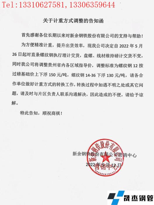免責聲明:本網站(山東聊城晟杰無縫鋼管廠www.qiazhuo.cn)刊載的“新余鋼鐵股份有限公司關于對貴州區域計重方式調整的告知函”等均源于網絡,版權歸原作者所有,且僅代表原作者觀點,本文所載信息僅供參考。轉載僅為學習與交流之目的,如無意中侵犯您的合法權益,請及時聯系刪除。本網站刊登此篇文章并不意味著本站贊同其觀點或證實其內容的真實性,我們不對其科學性、嚴肅性等作任何形式的保證。如果侵犯了您的版權,請盡快聯系我們予以撤銷,謝謝合作!