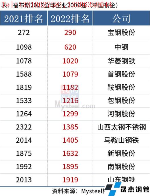免責聲明:本網站(山東聊城晟杰無縫鋼管廠www.qiazhuo.cn)刊載的“中國12家鋼企上榜福布斯2022全球企業2000強”等均源于網絡,版權歸原作者所有,且僅代表原作者觀點,本文所載信息僅供參考。轉載僅為學習與交流之目的,如無意中侵犯您的合法權益,請及時聯系刪除。本網站刊登此篇文章并不意味著本站贊同其觀點或證實其內容的真實性,我們不對其科學性、嚴肅性等作任何形式的保證。如果侵犯了您的版權,請盡快聯系我們予以撤銷,謝謝合作!