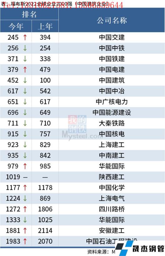 免責聲明:本網站(山東聊城晟杰無縫鋼管廠www.qiazhuo.cn)刊載的“中國20家建筑企業上榜福布斯2022全球企業2000強”等均源于網絡,版權歸原作者所有,且僅代表原作者觀點,本文所載信息僅供參考。轉載僅為學習與交流之目的,如無意中侵犯您的合法權益,請及時聯系刪除。本網站刊登此篇文章并不意味著本站贊同其觀點或證實其內容的真實性,我們不對其科學性、嚴肅性等作任何形式的保證。如果侵犯了您的版權,請盡快聯系我們予以撤銷,謝謝合作!