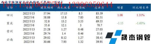據(jù)調(diào)研,截止2022年5月13日,西南市場(chǎng)厚壁無(wú)縫鋼管累計(jì)社會(huì)庫(kù)存為218.58萬(wàn)噸,環(huán)比減少6.14萬(wàn)噸,降幅2.73%。分省份來(lái)看,本周四川市場(chǎng)厚壁無(wú)縫鋼管庫(kù)存為83.59萬(wàn)噸,環(huán)比增加1.08萬(wàn)噸,漲幅1.31%;重慶市場(chǎng)厚壁無(wú)縫鋼管庫(kù)存為69.55萬(wàn)噸,環(huán)比減少1.15萬(wàn)噸,降幅1.63%;貴州市場(chǎng)厚壁無(wú)縫鋼管庫(kù)存為27.03萬(wàn)噸,環(huán)比減少4.57萬(wàn)噸,降幅14.46%;云南市場(chǎng)厚壁無(wú)縫鋼管庫(kù)存為38.41萬(wàn)噸,環(huán)比減少1.5萬(wàn)噸,降幅3.76%。