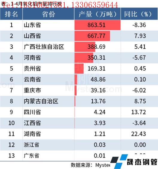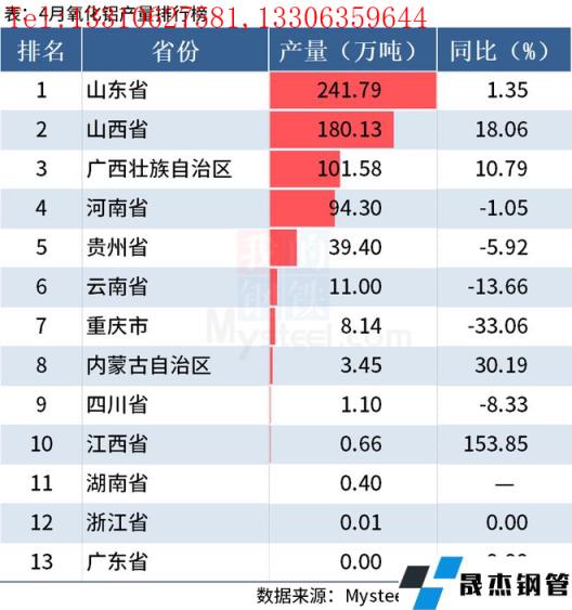 免責聲明:本網站(山東聊城晟杰無縫鋼管廠www.qiazhuo.cn)刊載的“統計局:前4月全國分省市鋁材、氧化鋁產量出爐”等均源于網絡,版權歸原作者所有,且僅代表原作者觀點,本文所載信息僅供參考。轉載僅為學習與交流之目的,如無意中侵犯您的合法權益,請及時聯系刪除。本網站刊登此篇文章并不意味著本站贊同其觀點或證實其內容的真實性,我們不對其科學性、嚴肅性等作任何形式的保證。如果侵犯了您的版權,請盡快聯系我們予以撤銷,謝謝合作!