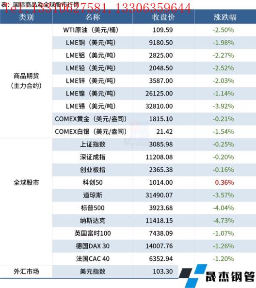 免責聲明:本網站(山東聊城晟杰無縫鋼管廠www.qiazhuo.cn)刊載的“2022年05月19日早讀:無縫鋼管廠家虧損面積擴大,全球大宗商品價格重挫”等均源于網絡,版權歸原作者所有,且僅代表原作者觀點,本文所載信息僅供參考。轉載僅為學習與交流之目的,如無意中侵犯您的合法權益,請及時聯系刪除。本網站刊登此篇文章并不意味著本站贊同其觀點或證實其內容的真實性,我們不對其科學性、嚴肅性等作任何形式的保證。如果侵犯了您的版權,請盡快聯系我們予以撤銷,謝謝合作!