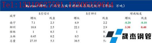 圖表一:廣西重點城市建材庫存周度統計
