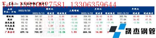 供應方面,本周五大厚壁無縫鋼管品種供應降至992.64萬噸,減量16.08萬噸,降幅1.6%,其中建材環比減量16萬噸,降幅3.5%;板材環比減量0.08萬噸,降幅0.01%。