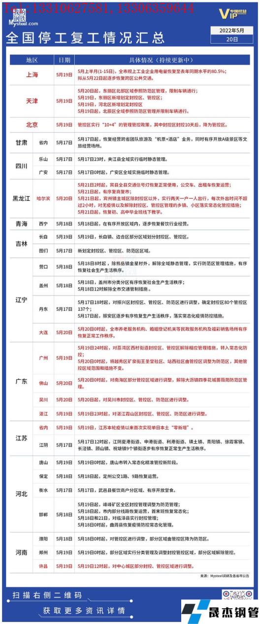 免責聲明:本網站(山東聊城晟杰無縫鋼管廠www.qiazhuo.cn)刊載的“疫情影響丨全國停工復工情況匯總(5月20日)”等均源于網絡,版權歸原作者所有,且僅代表原作者觀點,本文所載信息僅供參考。轉載僅為學習與交流之目的,如無意中侵犯您的合法權益,請及時聯系刪除。本網站刊登此篇文章并不意味著本站贊同其觀點或證實其內容的真實性,我們不對其科學性、嚴肅性等作任何形式的保證。如果侵犯了您的版權,請盡快聯系我們予以撤銷,謝謝合作!