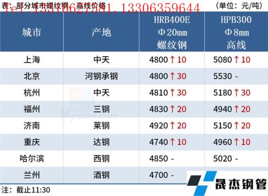 ◎北京:20日早盤建材市場價格漲30,河鋼小螺紋4900-4920,大螺紋4780-4800,盤螺5140。(單位:元/噸)