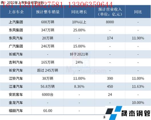 免責聲明:本網站(山東聊城晟杰無縫鋼管廠www.qiazhuo.cn)刊載的“12家上市車企公布2022年經營計劃”等均源于網絡,版權歸原作者所有,且僅代表原作者觀點,本文所載信息僅供參考。轉載僅為學習與交流之目的,如無意中侵犯您的合法權益,請及時聯系刪除。本網站刊登此篇文章并不意味著本站贊同其觀點或證實其內容的真實性,我們不對其科學性、嚴肅性等作任何形式的保證。如果侵犯了您的版權,請盡快聯系我們予以撤銷,謝謝合作!