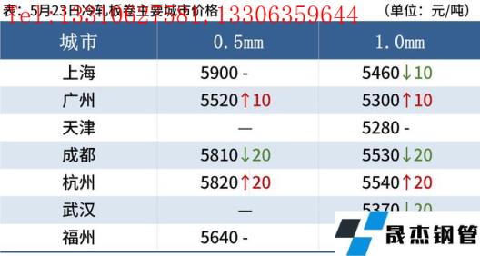 冷軋板卷:5月23日,全國24個(gè)主要城市1.0mm冷卷均價(jià)5480元/噸,較上個(gè)交易日下跌7元/噸。今日期貨熱卷盤面震蕩下行,現(xiàn)貨價(jià)格震蕩趨弱運(yùn)行;雖上海已實(shí)現(xiàn)社會(huì)面清零,疫情得到有效控制,但據(jù)貿(mào)易商反饋,目前上海市場(chǎng)只有部分倉庫已復(fù)工,部分道路和區(qū)域仍然受管制,出貨量很不理想,回款基本上靠投放在無錫、常州等市場(chǎng)的資源。心態(tài)方面,上海貿(mào)易商把大量資源投放周邊市場(chǎng),一定程度上也增加了周邊市場(chǎng)的競(jìng)爭(zhēng)壓力,無錫、常州等地貿(mào)易商近日也反饋成交較為一般,基本以長期固定訂單為主,對(duì)近日的行情多不太看好。綜合來看,預(yù)計(jì)24日國內(nèi)冷軋板卷價(jià)格或?qū)⒗^續(xù)震蕩趨弱運(yùn)行。