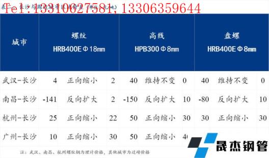統(tǒng)一為理計單位后,武漢高于長沙4元/噸,南昌低于長沙141元/噸,杭州高于長沙25元/噸,廣州高于長沙10元/噸。