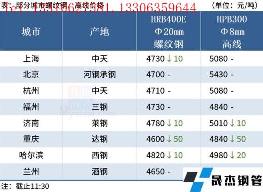 ◎上海:26日早盤建材市場價格部分資源小幅下調10。現螺紋4660-4700,西城抗震4700,其他4530-4580,興鑫抗震4590,聯鑫黃海抗震4600,盤螺4900-5090,高線亞新4840。(單位:元/噸)