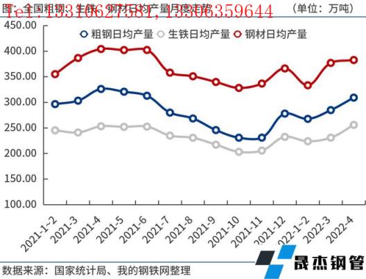 一、4月份全國粗鋼日均產量309.27萬噸,環比增長8.6%