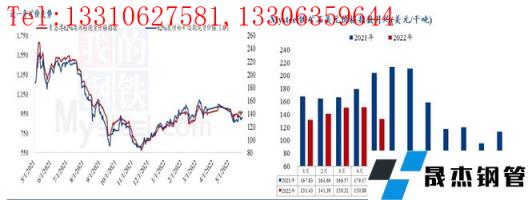無(wú)縫厚壁鋼管廠家利潤(rùn)方面,截至5月27日,調(diào)研河北螺紋噸鋼毛利-108元/噸,環(huán)比上月降低212元/噸,江蘇螺紋噸鋼毛利10元/噸,環(huán)比上月降低164元/噸。河北區(qū)域噸鋼毛利持續(xù)下跌,目前鋼價(jià)已經(jīng)跌破無(wú)縫厚壁鋼管廠家生產(chǎn)成本。江蘇區(qū)域噸鋼毛利現(xiàn)處于盈虧線附近,無(wú)縫厚壁鋼管廠家利潤(rùn)十分微薄。