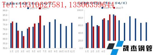 但隨著疫情影響的消退,按正常生產(chǎn)節(jié)奏上高爐鐵水產(chǎn)量月環(huán)比依舊出現(xiàn)增量,因此生產(chǎn)日耗增加,同時(shí)為保證廠內(nèi)正常生產(chǎn),在疫情常態(tài)化無(wú)縫厚壁鋼管廠家提貨需求也不斷增加,廠內(nèi)庫(kù)存維持近兩月的相對(duì)高位。