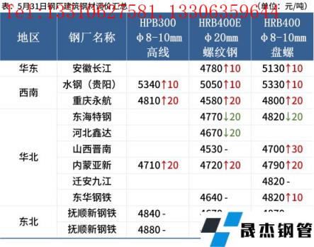 進口礦:5月31日,唐山地區進口礦市場偏強運行,市場成交一般。全天進口礦現貨市場價格整體較上一工作日上漲5-15元/噸,截止目前,唐山地區市場成交有PB粉上午980元/噸,下午975、976和978元/噸,紐曼塊1250元/噸,金布巴粉890元/噸,混合粉860元/噸。