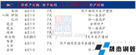 根據(jù)2022年5月中旬在烏魯木齊召開的新疆鋼鐵行業(yè)健康運行小組會議,后期經(jīng)疆內(nèi)各無縫厚壁鋼管廠家共同溝通,確定最終停減產(chǎn)方案:決定停限產(chǎn)開始時間調(diào)整為2022年6月1日,停產(chǎn)時間統(tǒng)一調(diào)整為7天,后期視情況做出相應調(diào)整。