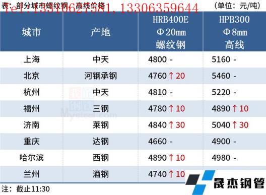 ◎福州:2日建筑厚壁無縫鋼管小漲10,現線三鋼4890三寶4880,螺三鋼4780三寶4760大東海4760吳鐵4750,盤三鋼4970三寶4970。(單位:元/噸)