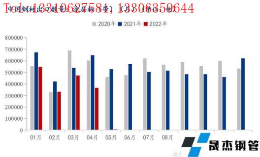 5月份消費端并沒有明顯的起色,因此在訂單上面并沒有太多的增加。成本方面,5月份原料熱軋價格雖然下行,但是今年運輸及天然氣成本上升,加工成本較往年增加。在產(chǎn)能利用率相對較低的情況下,企業(yè)的邊際效益減少。成本方面,5月份邯邢熱卷結算價格4940元/噸,較上月下降390元/噸,唐山冷軋基料結算價格集中在4920-4940元/噸。而在彩涂銷售這塊,客戶反饋訂單量依舊較少,生產(chǎn)難以完全飽和,因此從整體情況看,生產(chǎn)企業(yè)利潤微薄。四、4月份出口月環(huán)比年同比雙雙下降