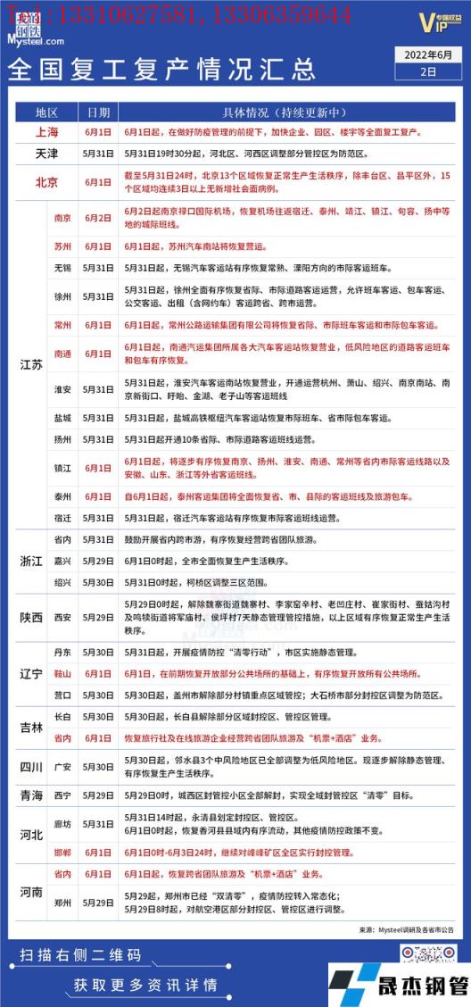 免責聲明:本網站(山東聊城晟杰無縫鋼管廠www.qiazhuo.cn)刊載的“疫情影響丨全國復工復產情況匯總(6月2日)”等均源于網絡,版權歸原作者所有,且僅代表原作者觀點,本文所載信息僅供參考。轉載僅為學習與交流之目的,如無意中侵犯您的合法權益,請及時聯系刪除。本網站刊登此篇文章并不意味著本站贊同其觀點或證實其內容的真實性,我們不對其科學性、嚴肅性等作任何形式的保證。如果侵犯了您的版權,請盡快聯系我們予以撤銷,謝謝合作!