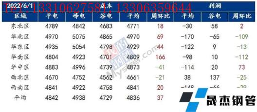 獨(dú)立電弧爐建筑厚壁無(wú)縫鋼管無(wú)縫厚壁鋼管廠家周度成本調(diào)研(2022年6月1日)(單位:元/噸)