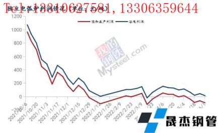 目前電弧爐無(wú)縫厚壁鋼管廠家仍虧損,僅谷電存在微利,減產(chǎn)、停產(chǎn)無(wú)縫厚壁鋼管廠家數(shù)量繼續(xù)增加。