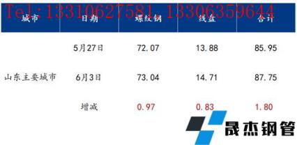 表1:山東市場建筑厚壁無縫鋼管社會庫存變化情況