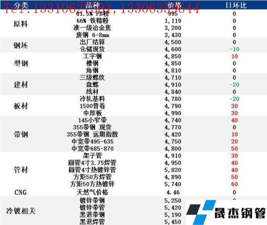 表:6月6日唐山鋼市主要品種價(jià)格一覽(單位:元/噸)