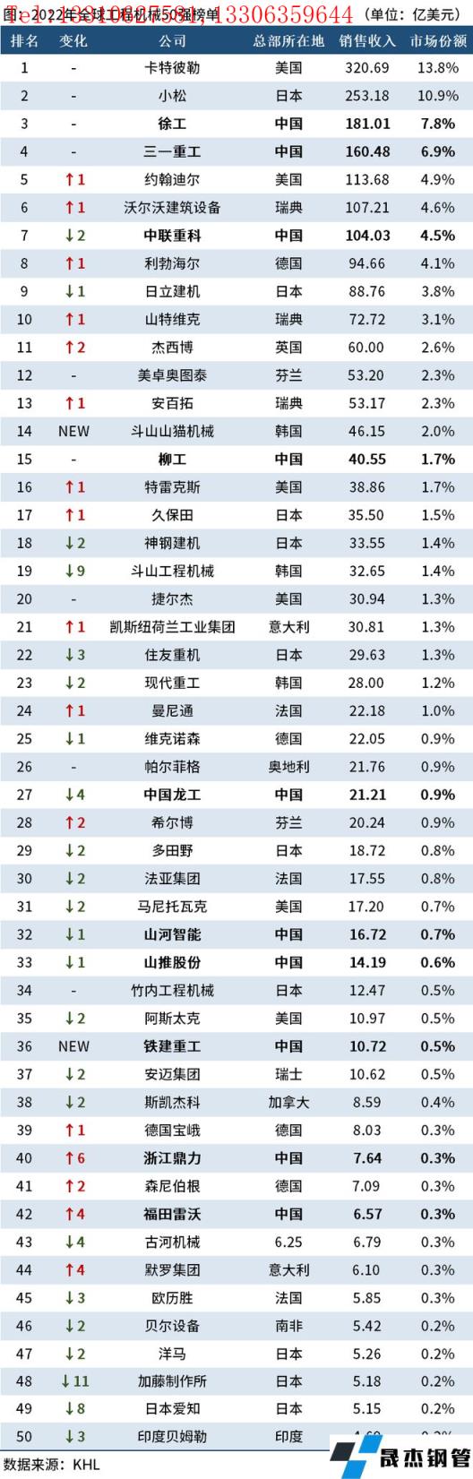 免責聲明:本網站(山東聊城晟杰無縫鋼管廠www.qiazhuo.cn)刊載的“2022全球工程機械50強榜單出爐,企業銷售額增超20%”等均源于網絡,版權歸原作者所有,且僅代表原作者觀點,本文所載信息僅供參考。轉載僅為學習與交流之目的,如無意中侵犯您的合法權益,請及時聯系刪除。本網站刊登此篇文章并不意味著本站贊同其觀點或證實其內容的真實性,我們不對其科學性、嚴肅性等作任何形式的保證。如果侵犯了您的版權,請盡快聯系我們予以撤銷,謝謝合作!