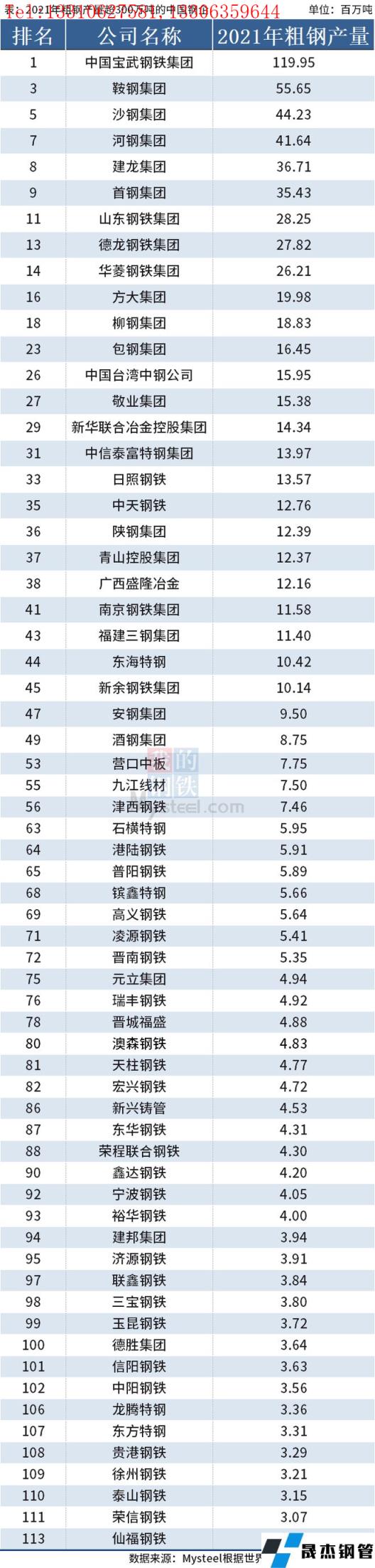免責聲明:本網站(山東聊城晟杰無縫鋼管廠www.qiazhuo.cn)刊載的“2021年中國64家重點鋼企粗鋼產量排名”等均源于網絡,版權歸原作者所有,且僅代表原作者觀點,本文所載信息僅供參考。轉載僅為學習與交流之目的,如無意中侵犯您的合法權益,請及時聯系刪除。本網站刊登此篇文章并不意味著本站贊同其觀點或證實其內容的真實性,我們不對其科學性、嚴肅性等作任何形式的保證。如果侵犯了您的版權,請盡快聯系我們予以撤銷,謝謝合作!