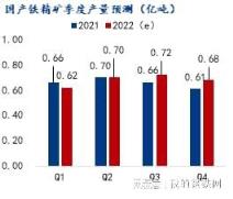 綜合以上分析,2022年,維持中國生鐵產量同比減少1400萬噸,國產鐵精礦產量同比增加1000萬噸預期不變,鐵礦石進口量同比減量擴大至1920萬噸。