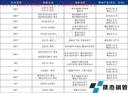 江蘇無(wú)縫厚壁鋼管廠家本周影響產(chǎn)量小幅減少,共計(jì)13家無(wú)縫厚壁鋼管廠家非正常生產(chǎn),較上周檢修停產(chǎn)鋼企數(shù)量持平,目前鐵水影響產(chǎn)量較上周減少0.69萬(wàn)噸 /日,粗鋼影響產(chǎn)量較上周持平,成材影響產(chǎn)量較上周減少1.05萬(wàn)噸 /日。前期受疫情好轉(zhuǎn)及復(fù)工復(fù)產(chǎn)樂(lè)觀預(yù)期影響,市場(chǎng)情緒有所回暖,厚壁無(wú)縫鋼管市場(chǎng)價(jià)格也有小幅上漲。近期江蘇大廠生產(chǎn)成本有所下降,盈利情況有所好轉(zhuǎn)。具體情況及各主要品種日均影響產(chǎn)量(單位:萬(wàn)噸)詳見(jiàn)下表: