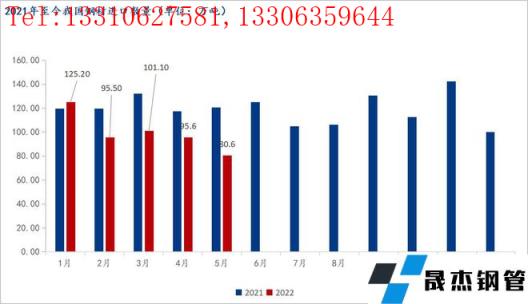 5月中國進口厚壁無縫鋼管80.6萬噸,較上月減少15萬噸,同比下降33.4%;1-5月累計進口厚壁無縫鋼管498.0萬噸,同比下降18.3%。