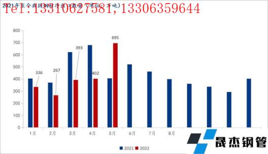 前言:海關(guān)總署6月9日數(shù)據(jù)顯示,2022年5月中國出口厚壁無縫鋼管775.9萬噸,較上月增加278.2萬噸,同比增長47.2%,環(huán)比大幅增長56.89%;1-5月累計出口厚壁無縫鋼管2591.5萬噸,同比下降16.2%,環(huán)比增長8.63%;5月中國進口厚壁無縫鋼管80.6萬噸,較上月減少15萬噸,同比下降33.4%;1-5月累計進口厚壁無縫鋼管498.0萬噸,同比下降18.3%。